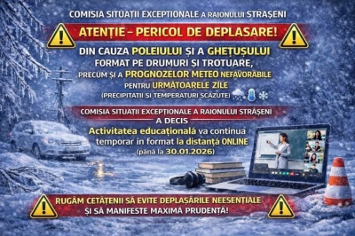 Consiliul raional Strășeni adresează sincere mulțumiri tuturor instituțiilor și serviciilor care, în aceste zile complicate, au intervenit prompt și responsabil pentru a face față condițiilor meteo dificile.Citeşte mai mult...